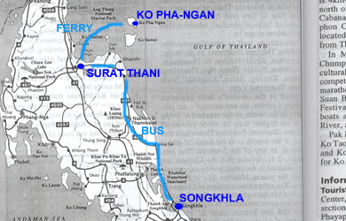 the overnight stay in Surat Thani and the ferry trip to the harbour of Ko Pha-Ngan,